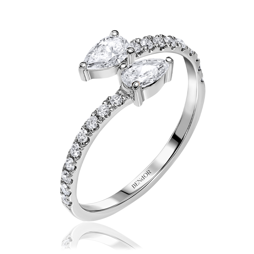 Twin Pear-Cut Diamond Ring, 0.60 ct total, 14K White Gold. Meticulously designed and crafted, the two pear-cut diamonds give it a sophisticated, stunning appearance.