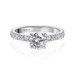 טבעת אירוסין אלגנטית, מהממת ביופיה. נתוני הטבעת: יהלום מרכזי 1 קראט ועוד 0.30 קראט יהלומים בצדדים.