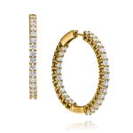 עגילי חישוק אלגנטיים משובצים יהלומים. נתוני התכשיט: משקל הזהב 6 גרם, 1.9 קראט יהלומים. ניתן להזמין גם ביהלומים טבעיים וגם ביהלומי מעבדה.